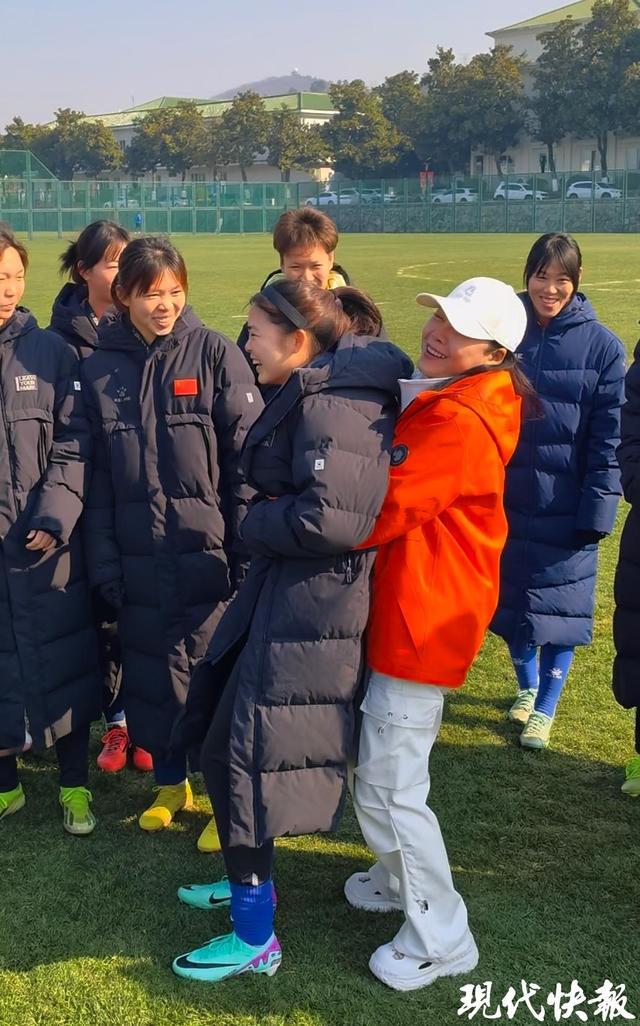 现代快报讯(记者 王卫/文 吉星/摄)1月23日上午,著名歌手田震来到江苏省江宁足球训练基地,与江苏女足的球员们互动。2025年,江苏女足在全运会上斩获冠军,苏超联赛也风靡全国。田震凭借《风雨彩虹铿锵玫瑰》红遍大江南北,这首歌唱出了女足精神,后来成为中国女足的代表性歌曲。