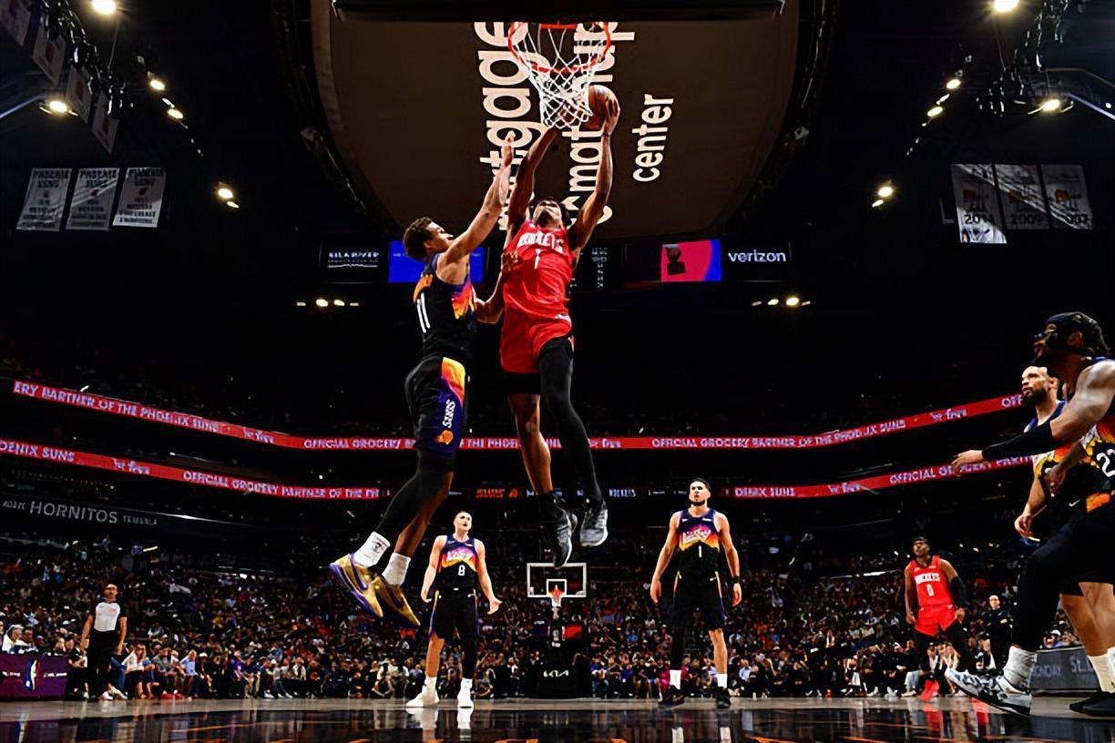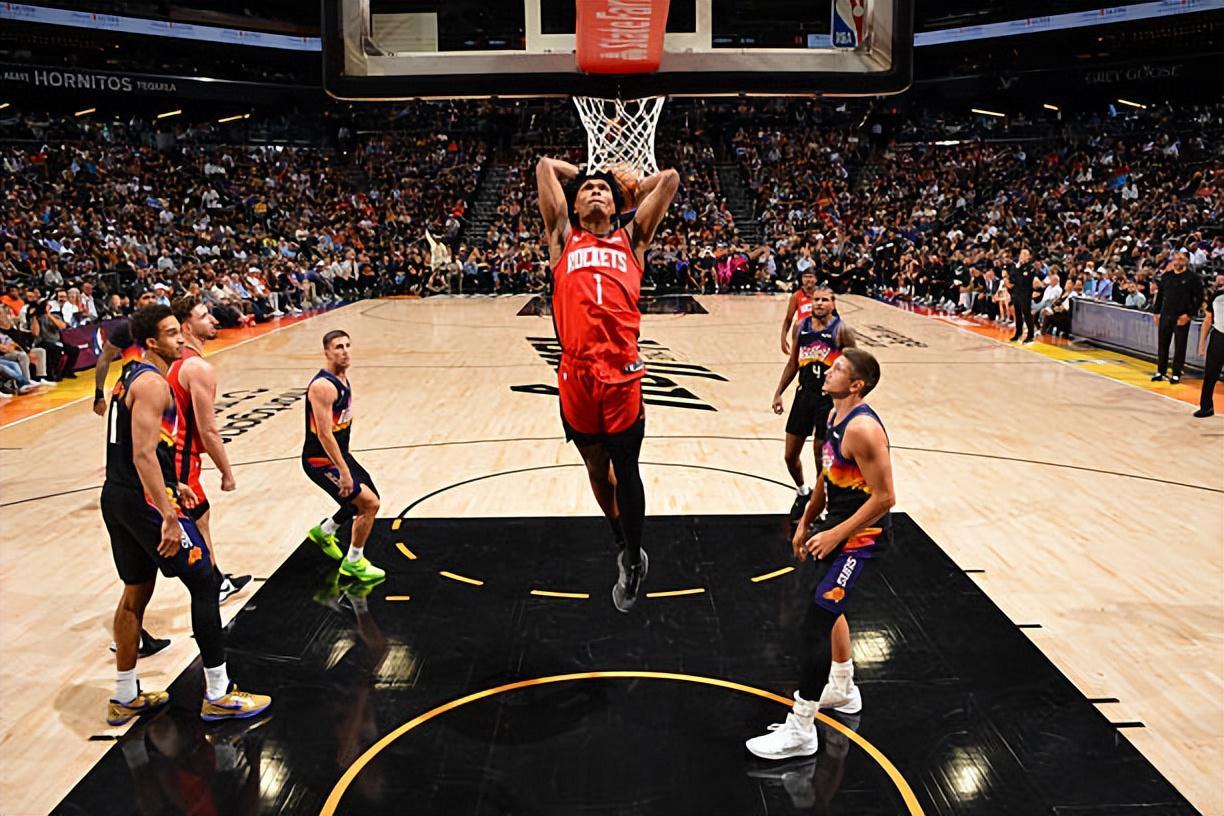 本场比赛中,火箭的先发后场新星阿门-汤普森(Amen Thompson)的表现算得上是现象级,他也是又一次将自己在各方面的才能都发挥了出来。阿门全场出场35分37秒,投篮16中10,三分线外1中0,罚球2中2,得到了22分11篮板8助攻3抢断1盖帽的两双数据,其中还包括了6个前场篮板,还有4次失误和4次犯规,正负值为+2。阿门在进攻端不断对手内线发起冲击,展现出了自己超强的终结能力,他在运动能力方面的优势也是显露无遗。除此之外,阿门也展现出了一定的传球能力和策应能力,在进攻端的作用非常全面。阿门在防守端更是打出了极其出色的表现,他给太阳的几名后场球员制造了巨大的防守压力,这也直接导致了太阳的进攻出现了受阻的情况。阿门在前后场篮板争抢方面的表现同样是极其出色的,同样起到了关键性的作用。总体来看,阿门在本场比赛中算是起到了极其出色的效果了,这也是为球队的胜利做出了巨大的贡献。
